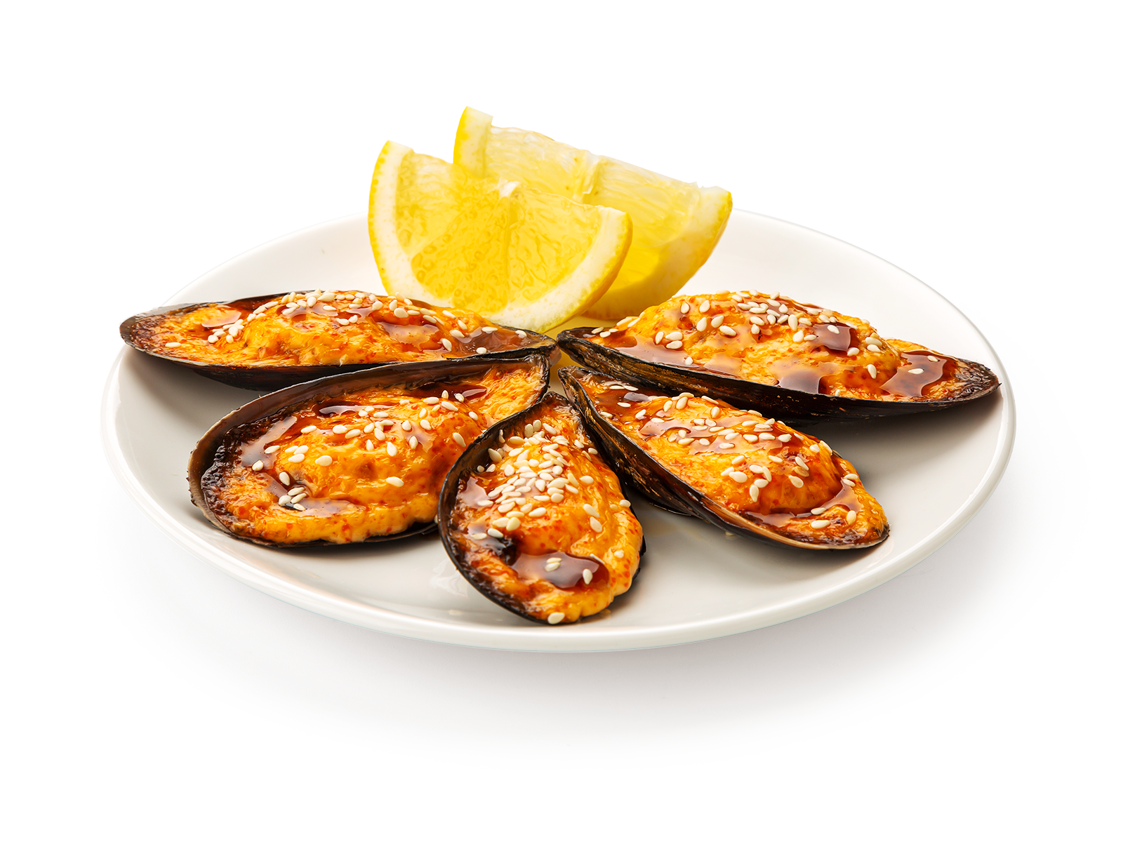 Соус розовый, унаги-соус, лимон, кунжут, мидии Гигант (5 шт.)