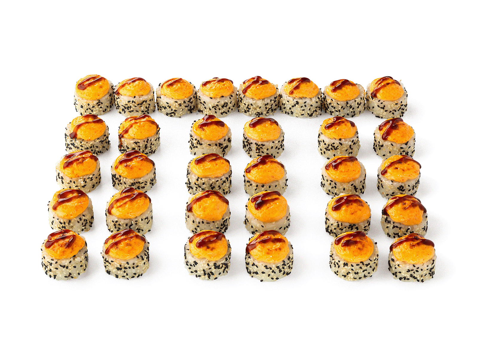 Запеченные роллы: с лососем, с крабом, с креветкой, с курицей.