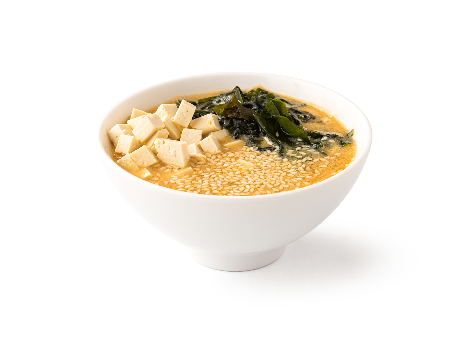 Мисо бульон, вакаме, соус кимчи, соус шрирача, тофу, яйцо, кунжутное масло, кунжут